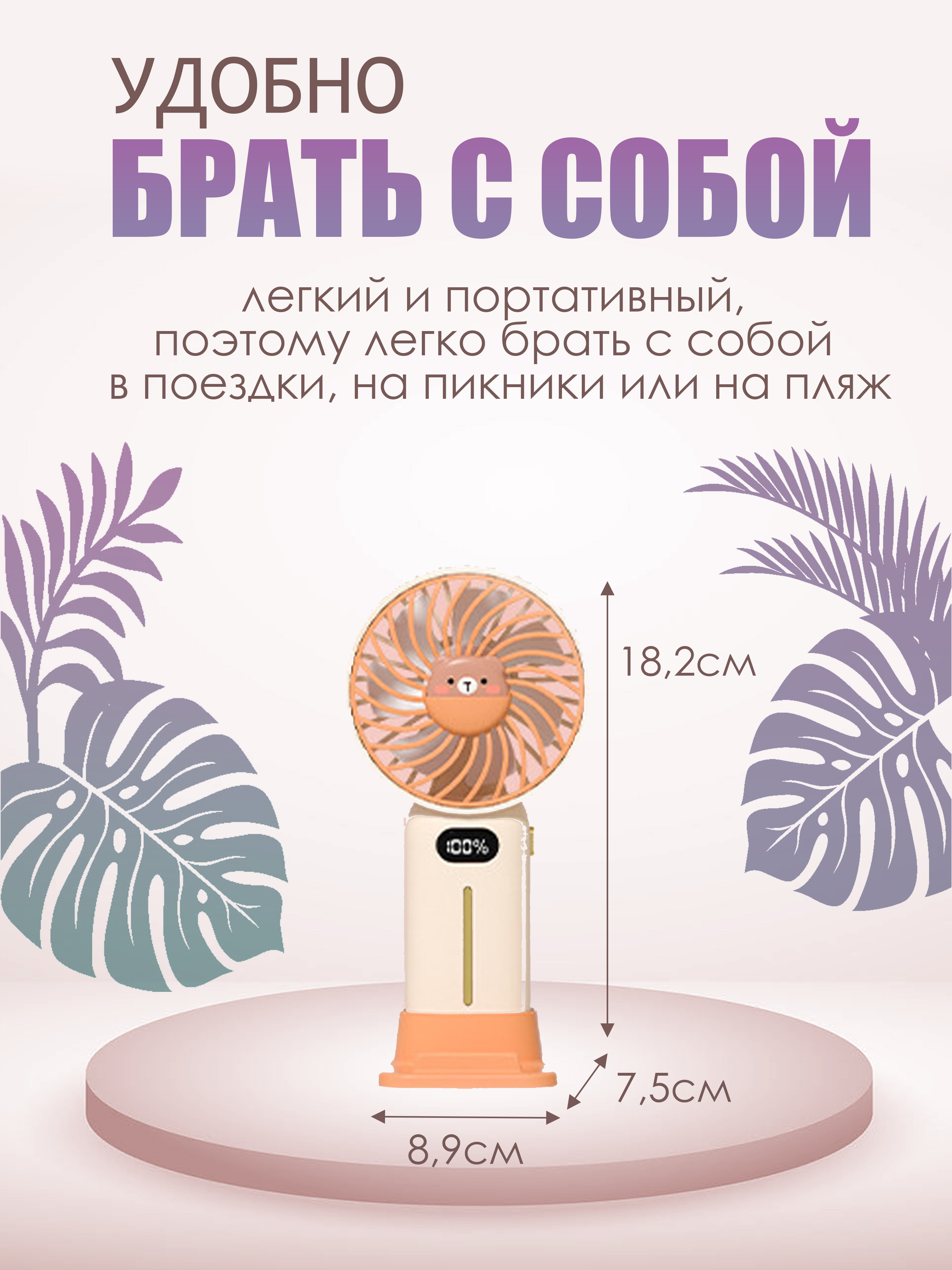 Вентилятор портативный, настольный,персиковый