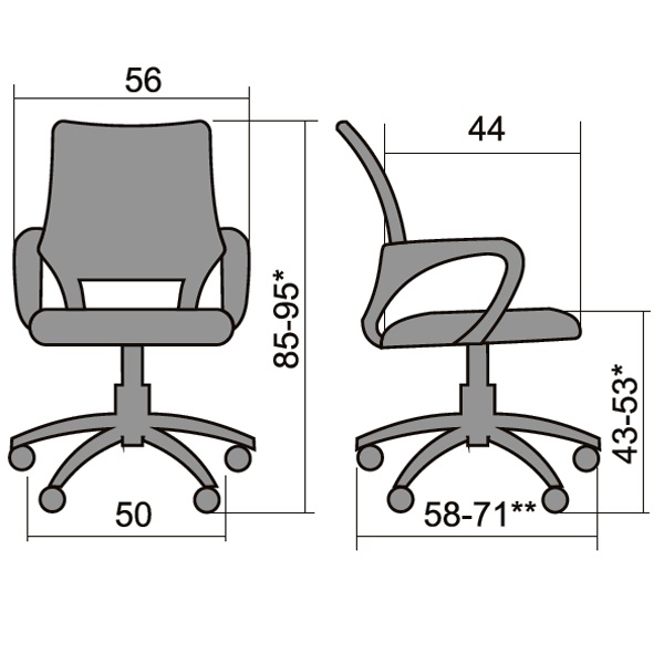 *Высота сиденья в верхнем и нижнем положении может быть изменена, в зависимости от модели применяемого газ-лифта.