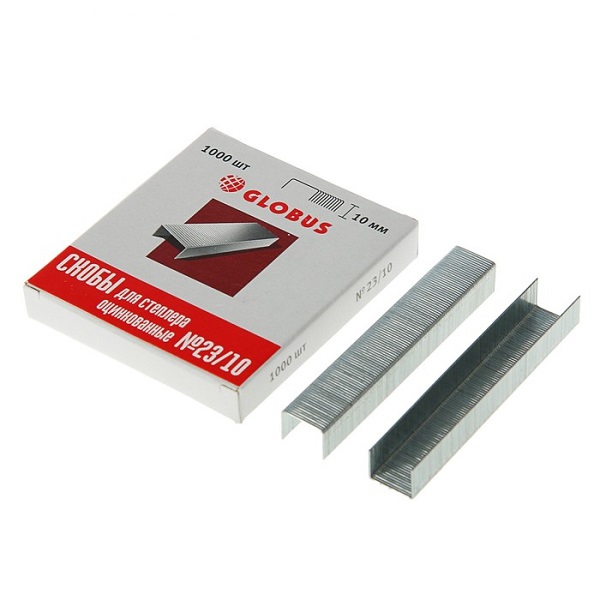 Скобы для степлера "Globus" №23/10 1000 шт в картонной коробке/С23/10-1000