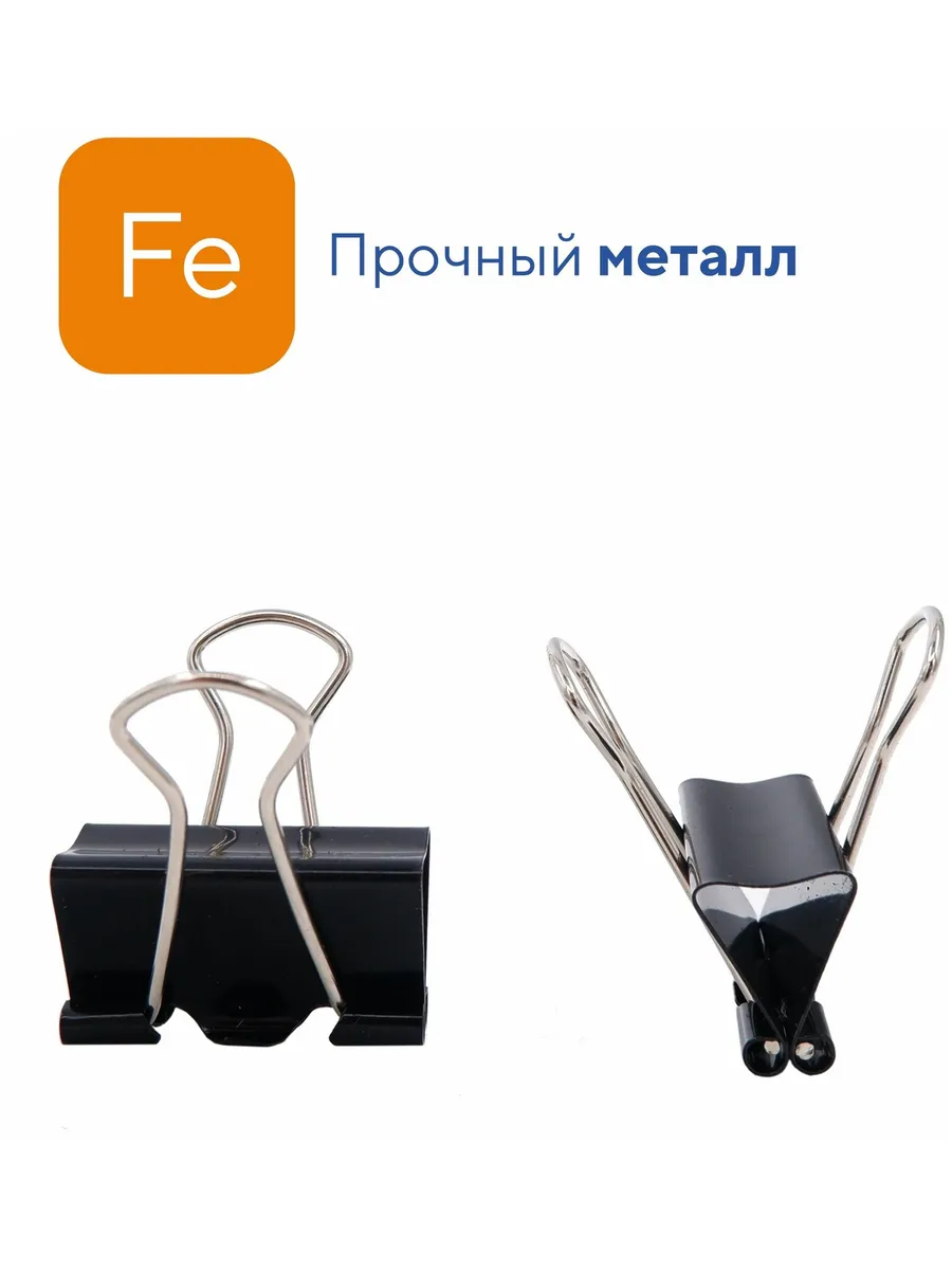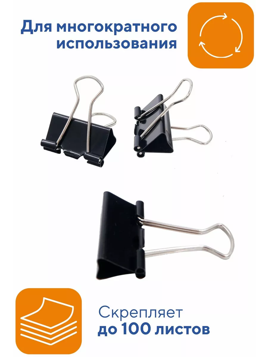 Для скрепления большого количества листов. Не деформируют бумагу. Цвет черный. 12 штук в коробочке.