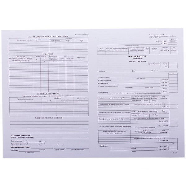Бланк "Личная карточка" А-3 (уп. 50шт.) (B-KL3-21-1_508)/162006