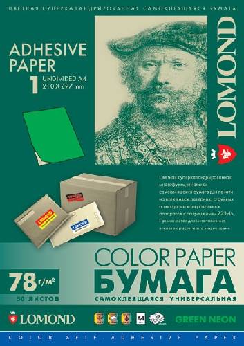 Бумага самоклеящаяся А4 50л. LOMOND флюор.зеленая 2020005 УЦЕНКА (повреждена упаковка)