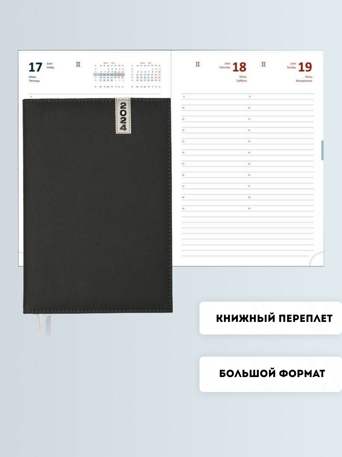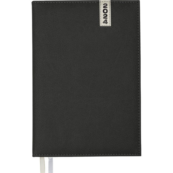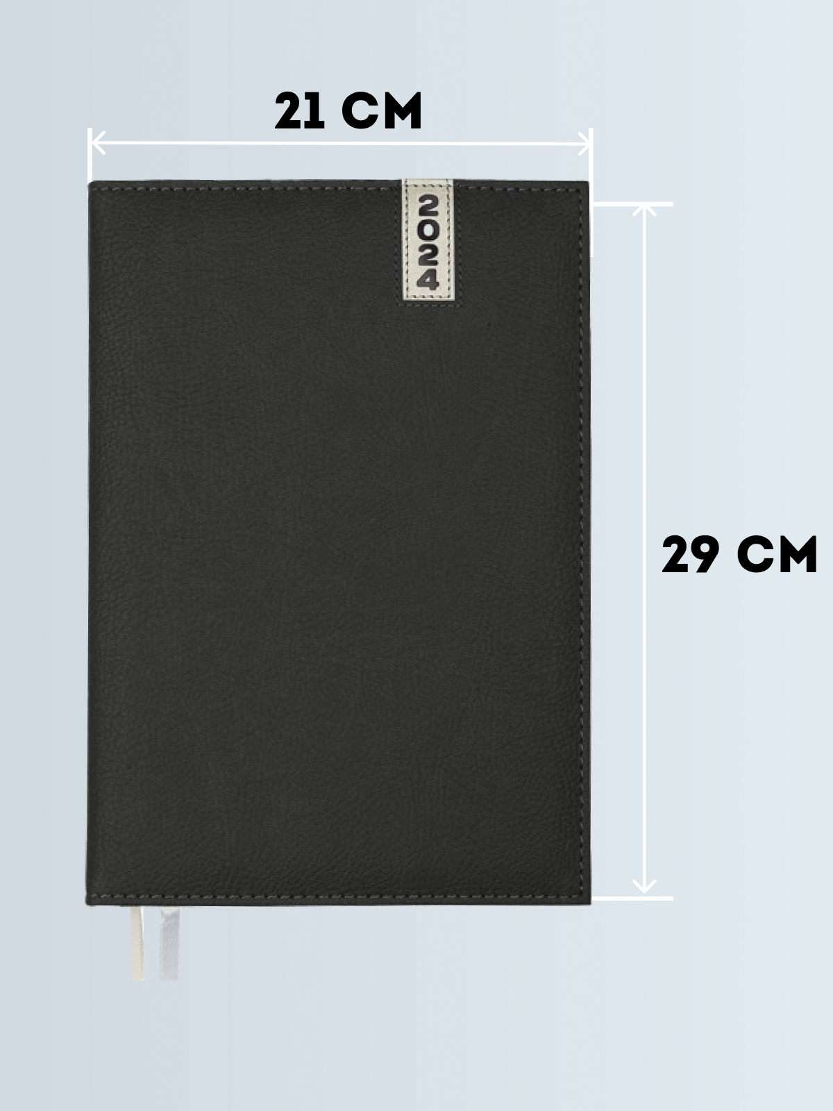 Еженедельник датированный 2024 A4 (210 ммx290 мм) 128 стр, кремовая бумага 70 г/м², печать в 2 краски, твердая обложка из искусственной кожи с поролоном, отстрочка, термо тиснение, перфорация, 2 ляссе, в термоусадочной пленке, черный