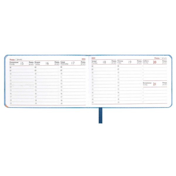 Еженедельник датированный, 150x87 мм, 64 л. кожзам: мягкий переплёт, материал обложки: искусственная кожа "Виннер"; декор: блинтовое тиснение; способ крепления блока: ниткошвейный; вн. блок: 64 л., белый офсет 70 г/м², печать в две краски (линия), справочный материал: есть; перфорация углов блока: нет; закладка/-и: одно ляссе; каптал: есть; форзац: без печати; персонализация возможна: да; индивидуальная упаковка: ПЭТ-пакет