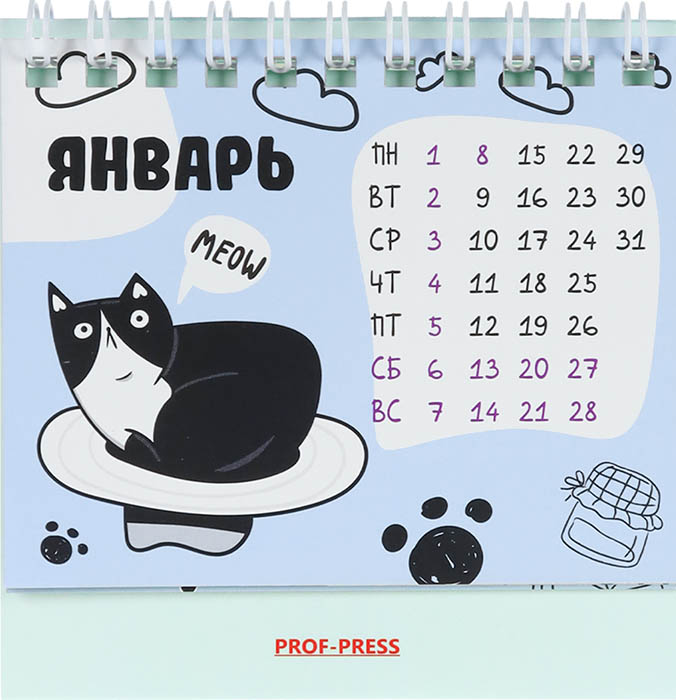 Календарь-домик перекидной на гребне выполнен в размере 100х100 мм и оснащен блоком для записи с обратной стороны, основание — мелованный картон 200 г/м2, блок 12 листов, 115 г/м2. Календарная сетка на месяц.