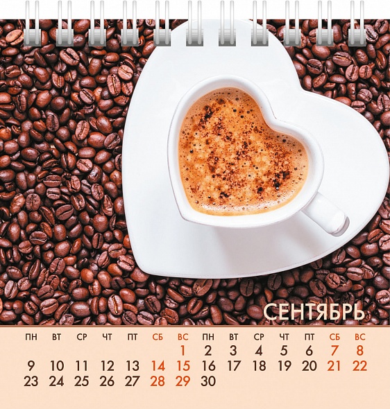 Настольный перекидной календарь на гребне. Формат: 101х101 мм, количество листов: 12. Обложка и блок: цветные, мелованная бумага 115 гр. Подставка: жесткий картон 250 гр. Основным преимуществом календаря является компактный и эргономичный размер. Каждая страница содержит привлекательное и красочное изображение с удобной календарной сеткой.