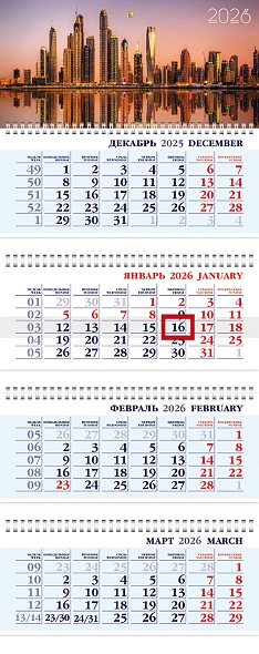 Календарь кварт.4-х блоч. 2026г. -Небоскребы- на 4-х гребнях, с бегунком 4Кв4гр3_34307
