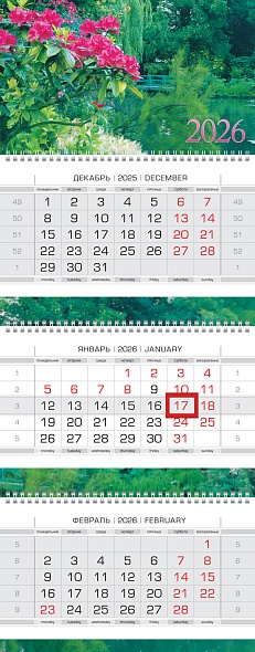 Календарь кварт.3-х блоч. 2026г. -Прогулка в парке- на 3х гребнях ЛЮКС, с бегунком 3Кв3гр2ц_04055