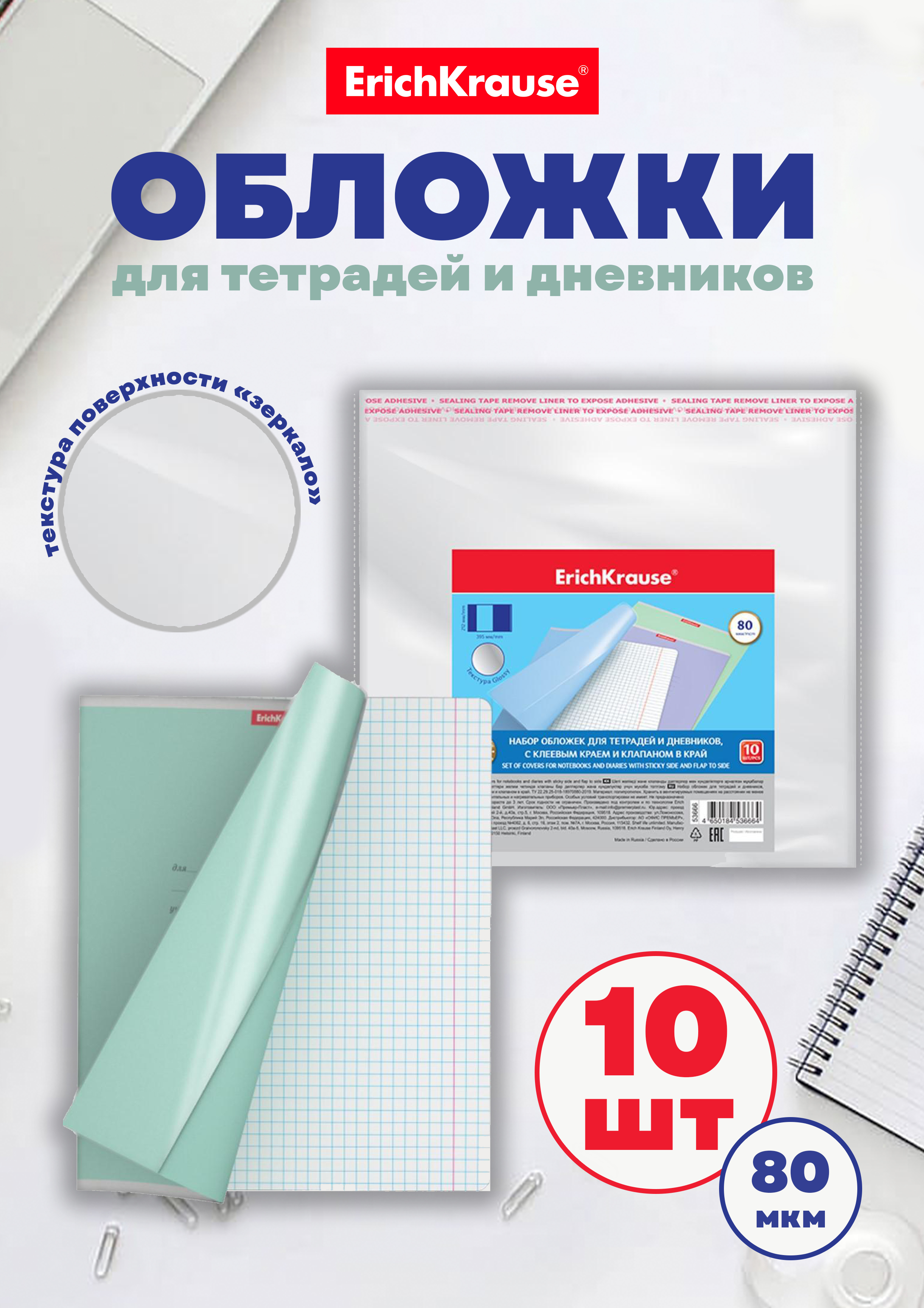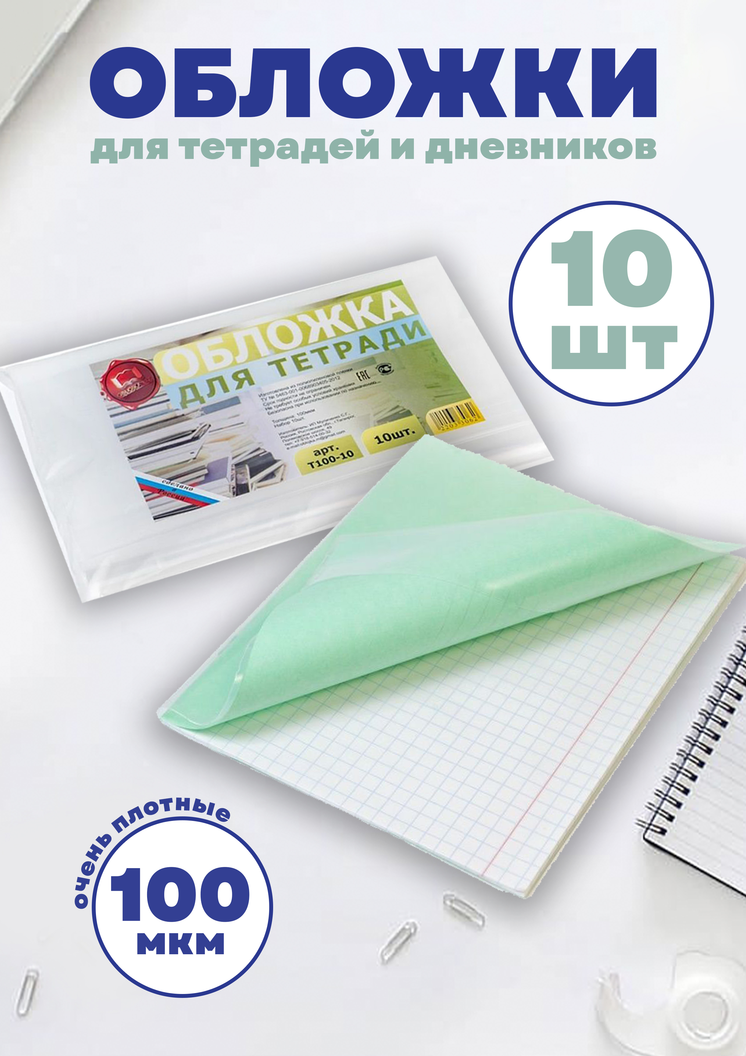 Набор обложек для тетрадей 210*350, 100мкм (10шт.) ПВД Т100-10