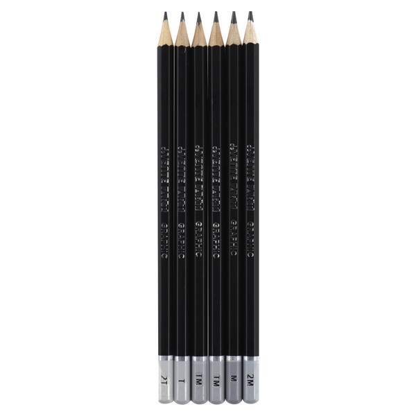 Карандаш чернографитный 6 шт в наб (2Т, Т, ТМ-2, М, 2М), шестигранный, заточенный, корпус черный с топом, в картонной коробке