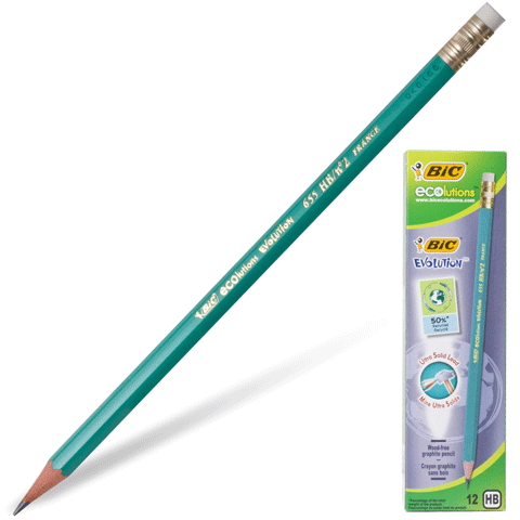 Карандаш BIC Evolution 655, чернографитовый, пластиковый, шестигранный профиль, заточенный, гибкий, твердость HB, с ластиком. Прочный грифель с добавлением пластика. Не образует острых краёв на изломе, не расщепляется при механическом воздействии. Легко сгибается.