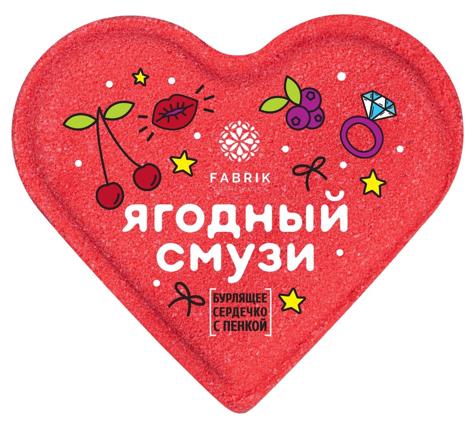Бомбочка для ванн Сердечко Ягодный смузи с пенкой 110гр