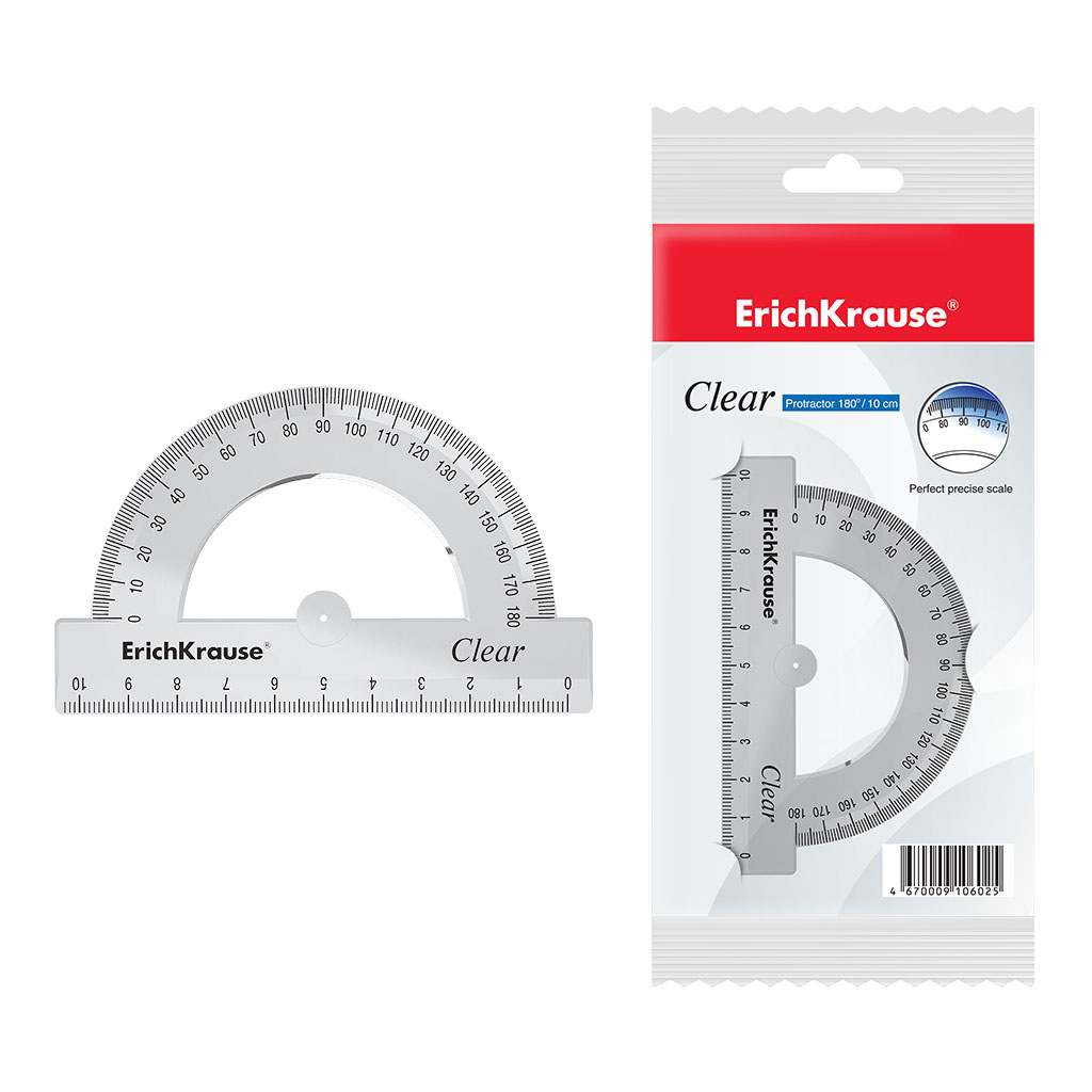 Транспортир 10 см/180* ErichKrause Clear пластик. 49550 ассорти