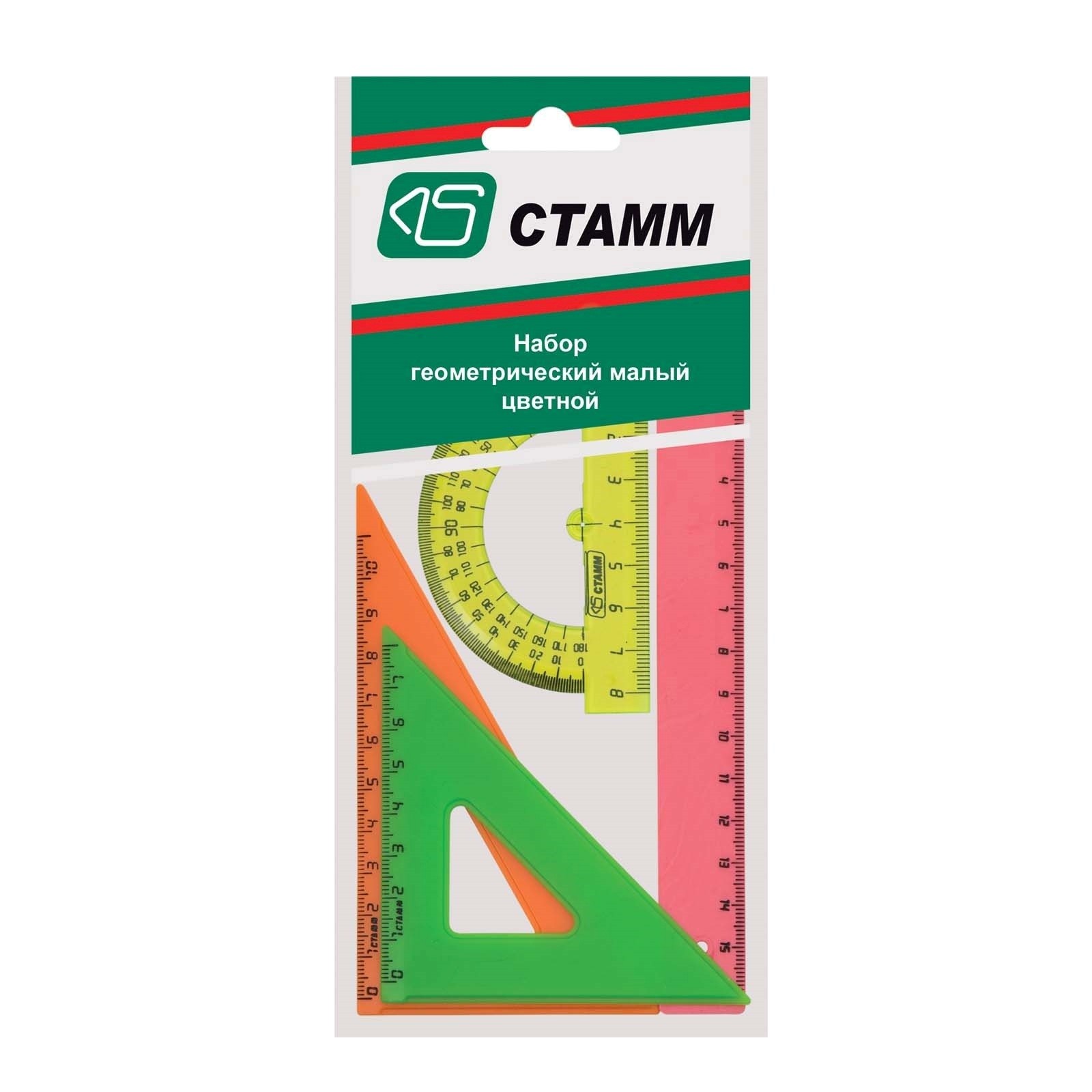 Набор линеек большой Стамм (треуг. 2 шт., лин. 25, тр-р) неоновые цвета, ассорти, НЧ-30522 европодвес