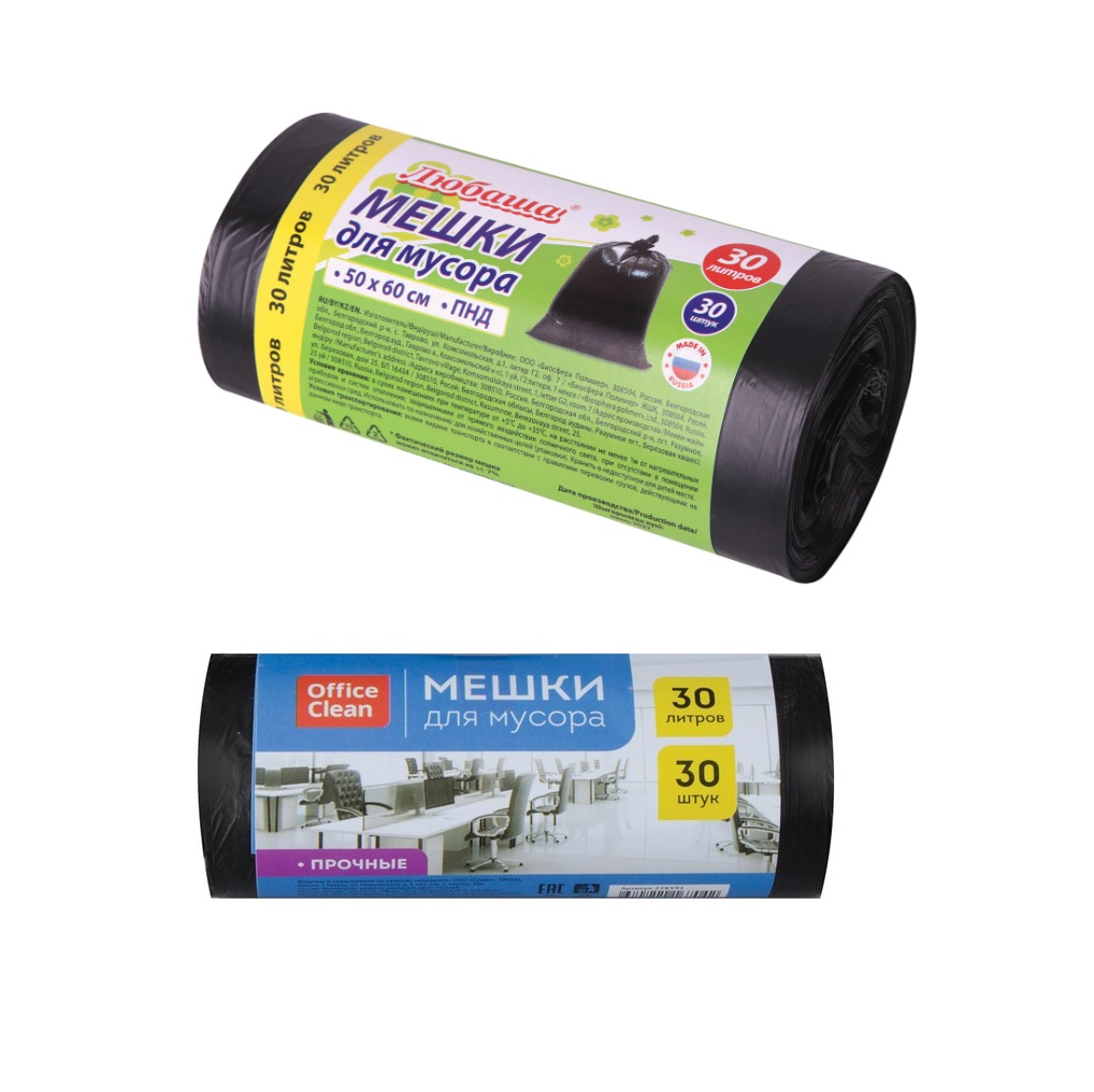 Мешки д/мусора 30л*30 шт 6,5мкм в рулоне ПНД черные