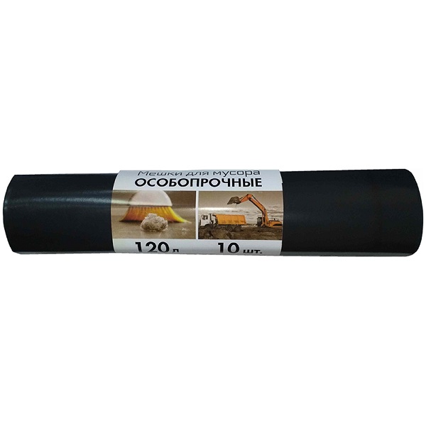 Мешки д/мусора 120л*10шт/рул. 80 мкм черные ПВД
