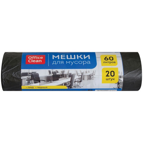 Мешки д/мусора 60л*20шт 6мкм рулон ПНД черные