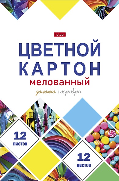 Набор цветного картона А4 12л. 12цв., -Мозаика- мелованный с золотом и серебром 12Кц4к_32556