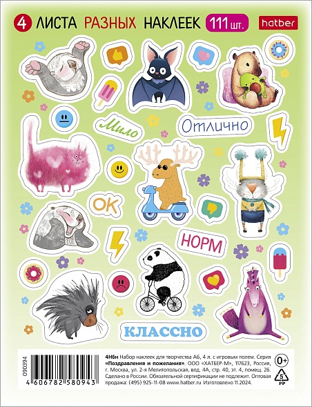 Набор наклеек Хатбер А6 4л. -Ассорти- 4Н6н