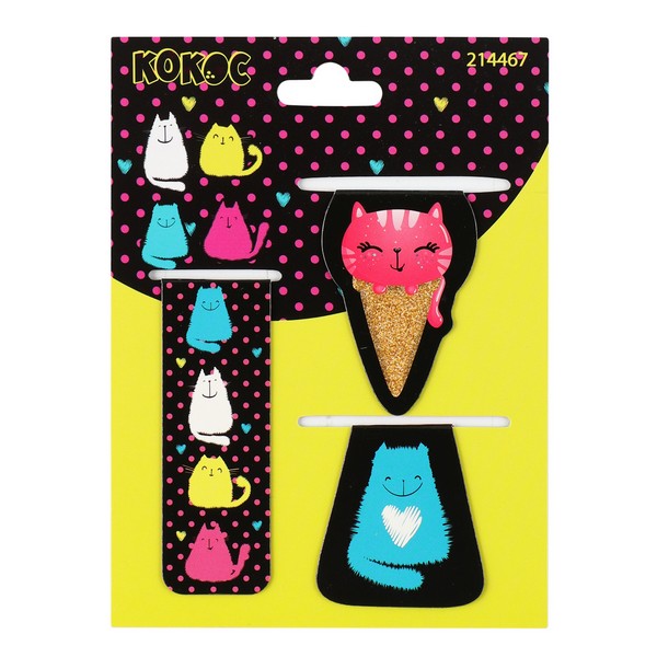 Закладка-магнит 3шт. КОКОС Funny Cats 214467