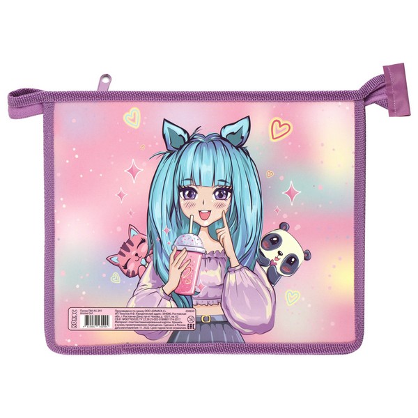 Папка для тетрадей А5 КОКОС. Anime Girl, молния сверху ПМ-А5-291/230650