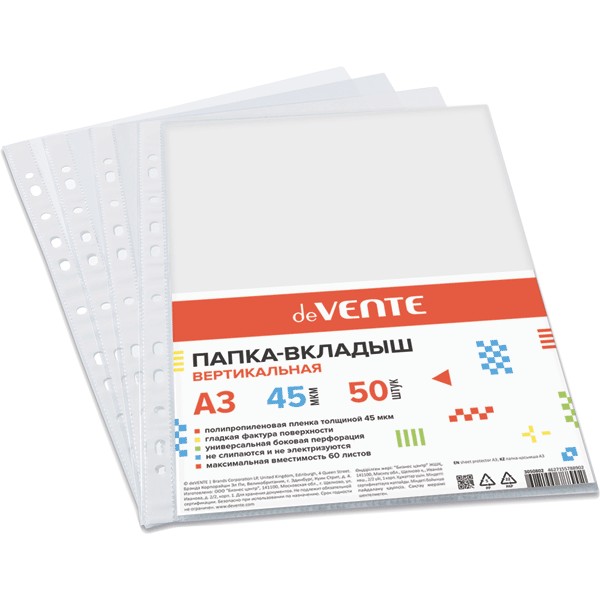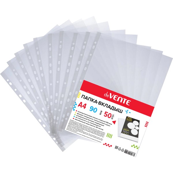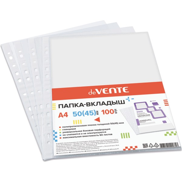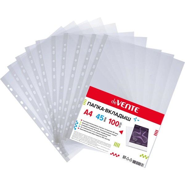 Файловый вкладыш A4 50 ( 45 )мкм 100шт deVENTE 3050007 гладкий