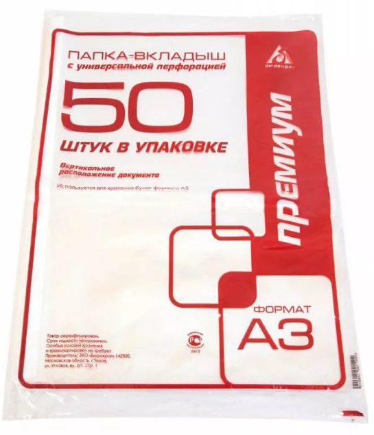 Файловый вкладыш А3 30мкм 50шт вертикальный