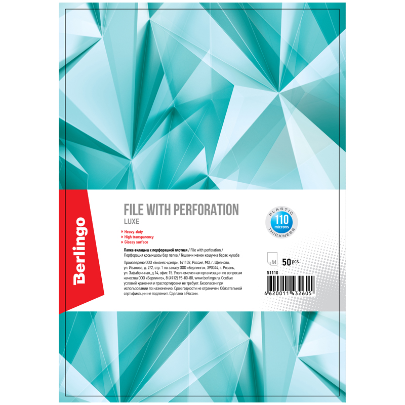 Файловый вкладыш А4 50мкм 50шт с перфор. HD PREMIUM 5330 гладкий