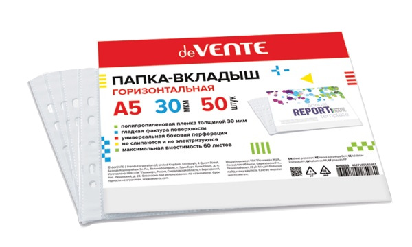 Файловый вкладыш A4 50 ( 45 )мкм 100шт deVENTE 3050007 гладкий