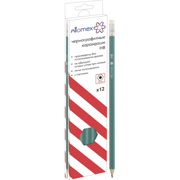 Карандаш простой Attomex HB 5032101 желт. корп., заточенный с ластиком