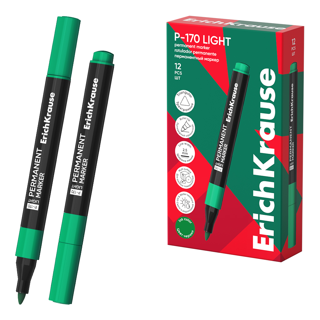 Маркер перм.ErichKrause Р-170 трехгранный, зеленый 63566