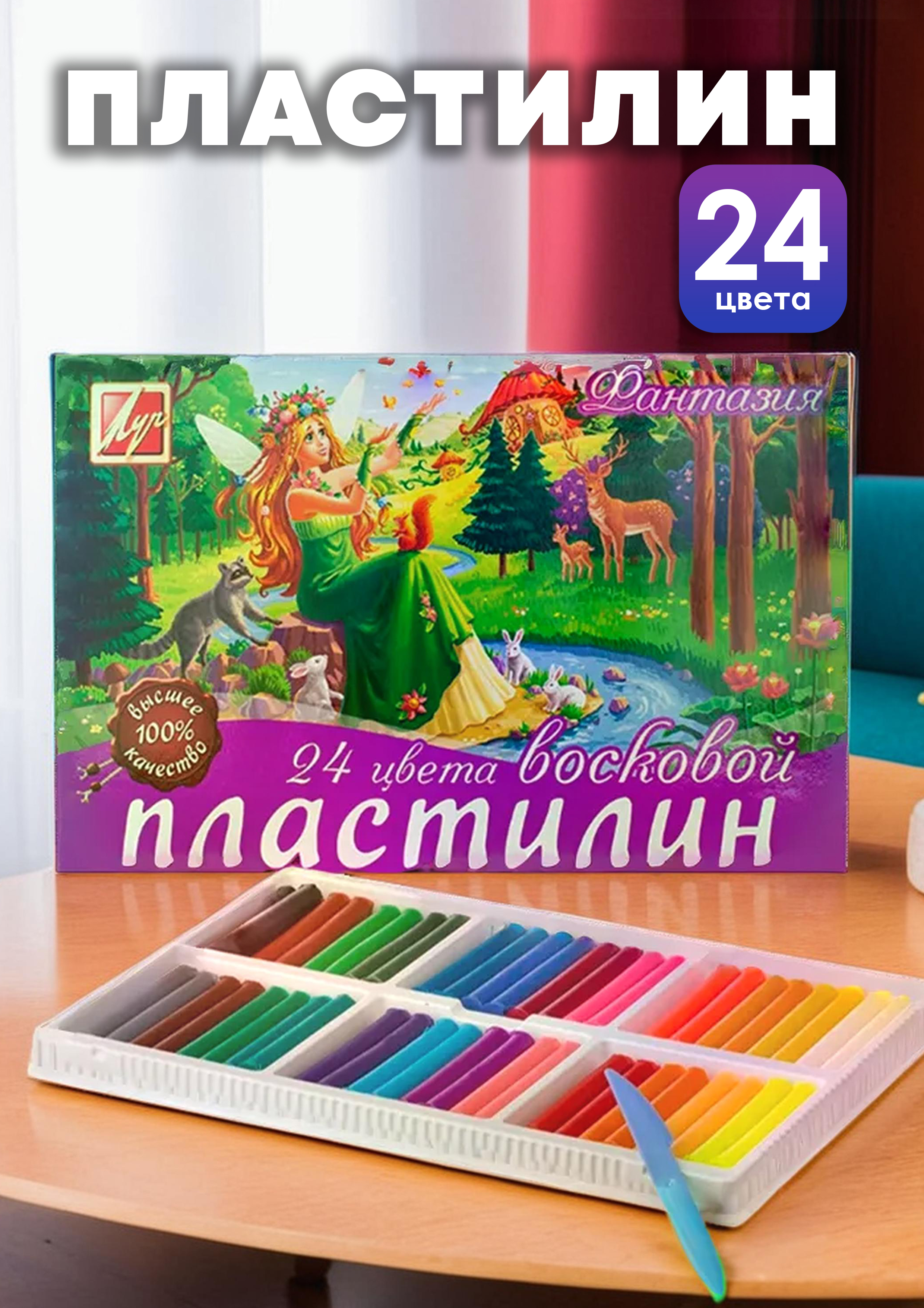 Пластилин 24 цв. 420гр, Фантазия, восковой, мягкий 25С 1525-08