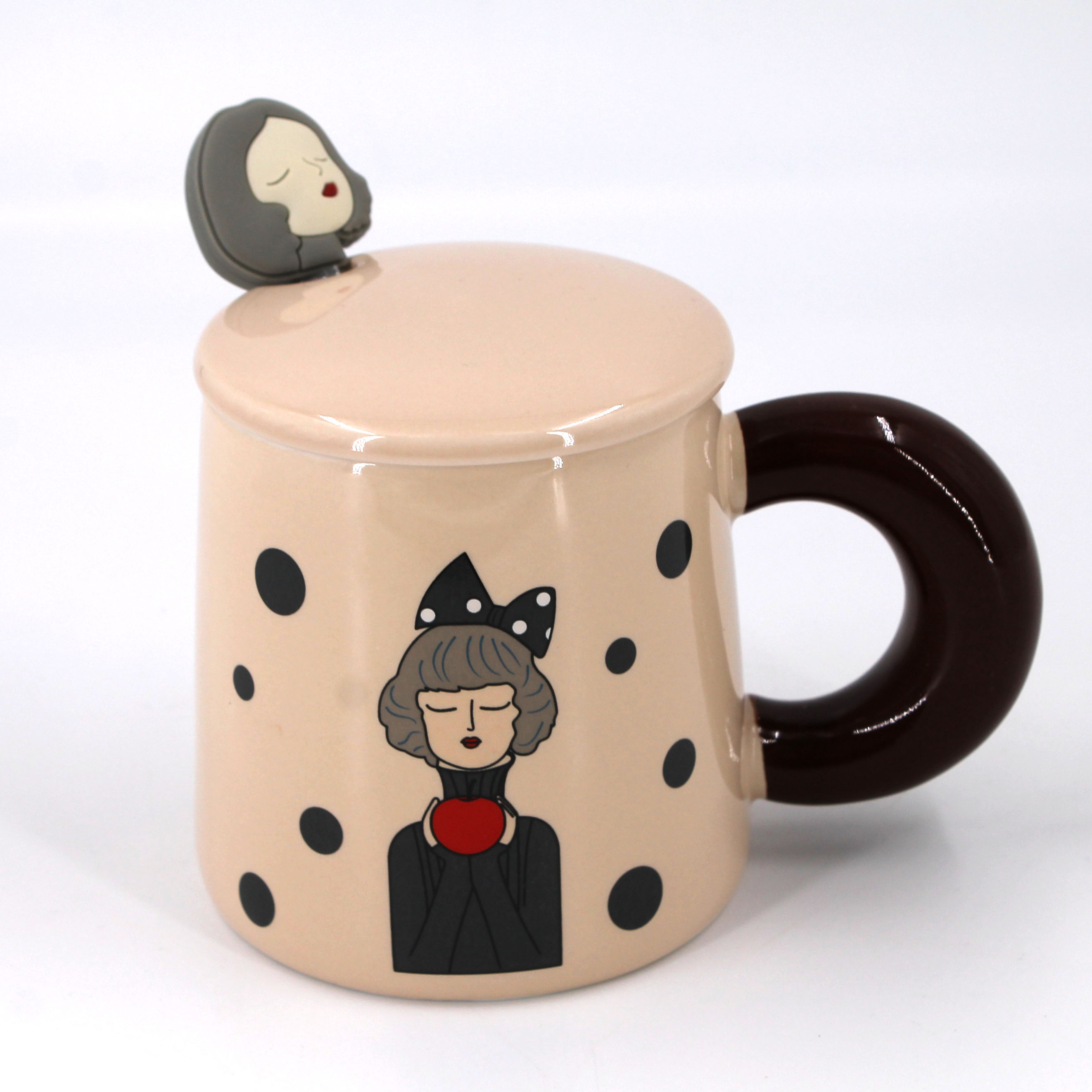 Кружка 500мл Мадам Арт, керамика, крышка, ложка