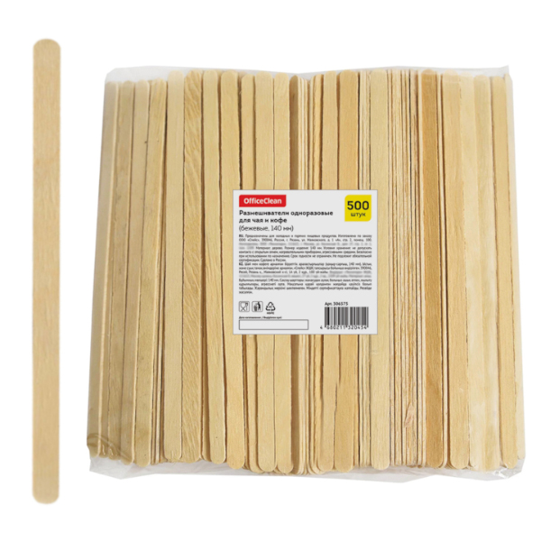 Размешиватель бежевый, деревянный, 500 шт/уп