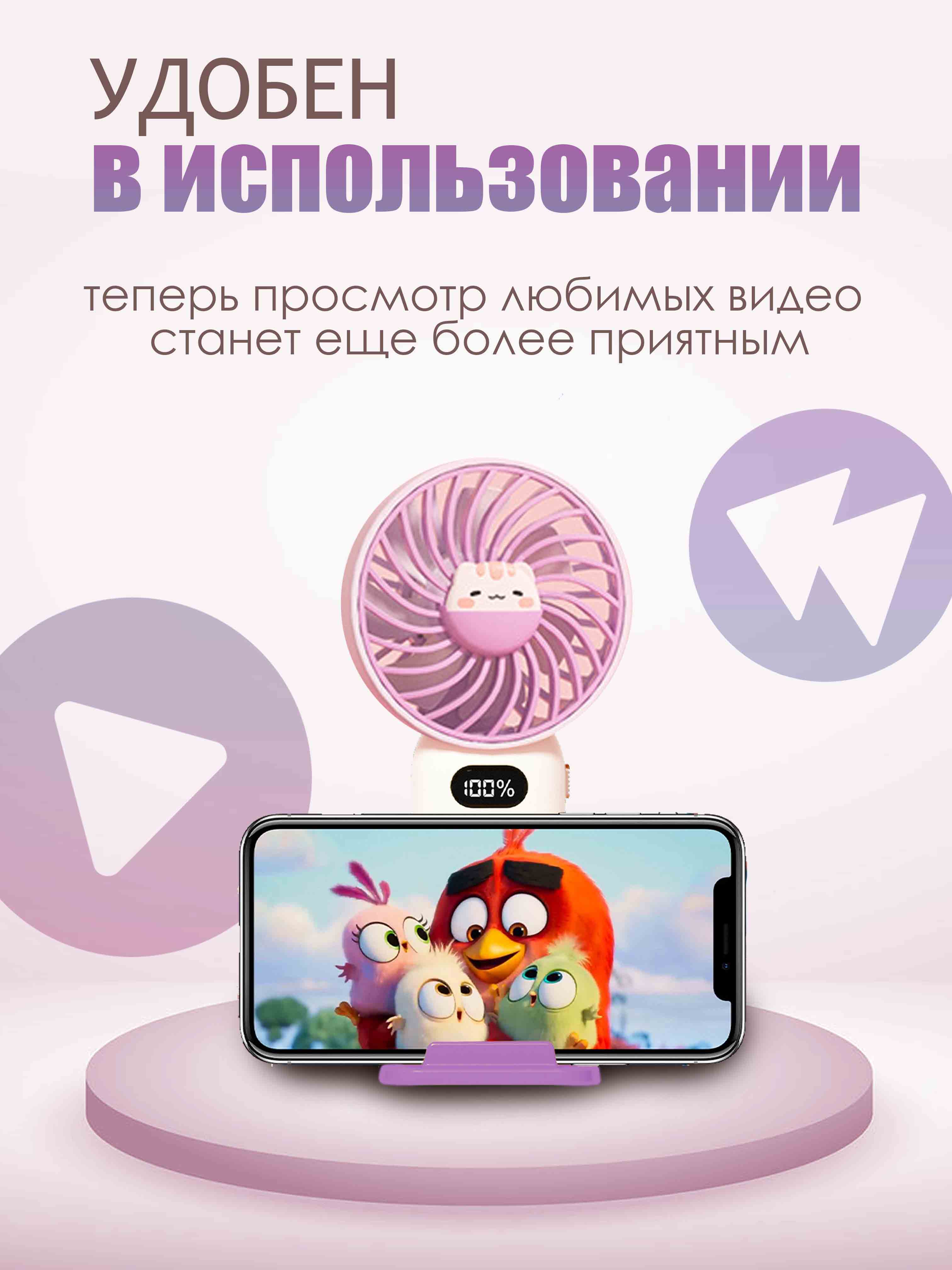 Вентилятор портативный, настольный, лиловый