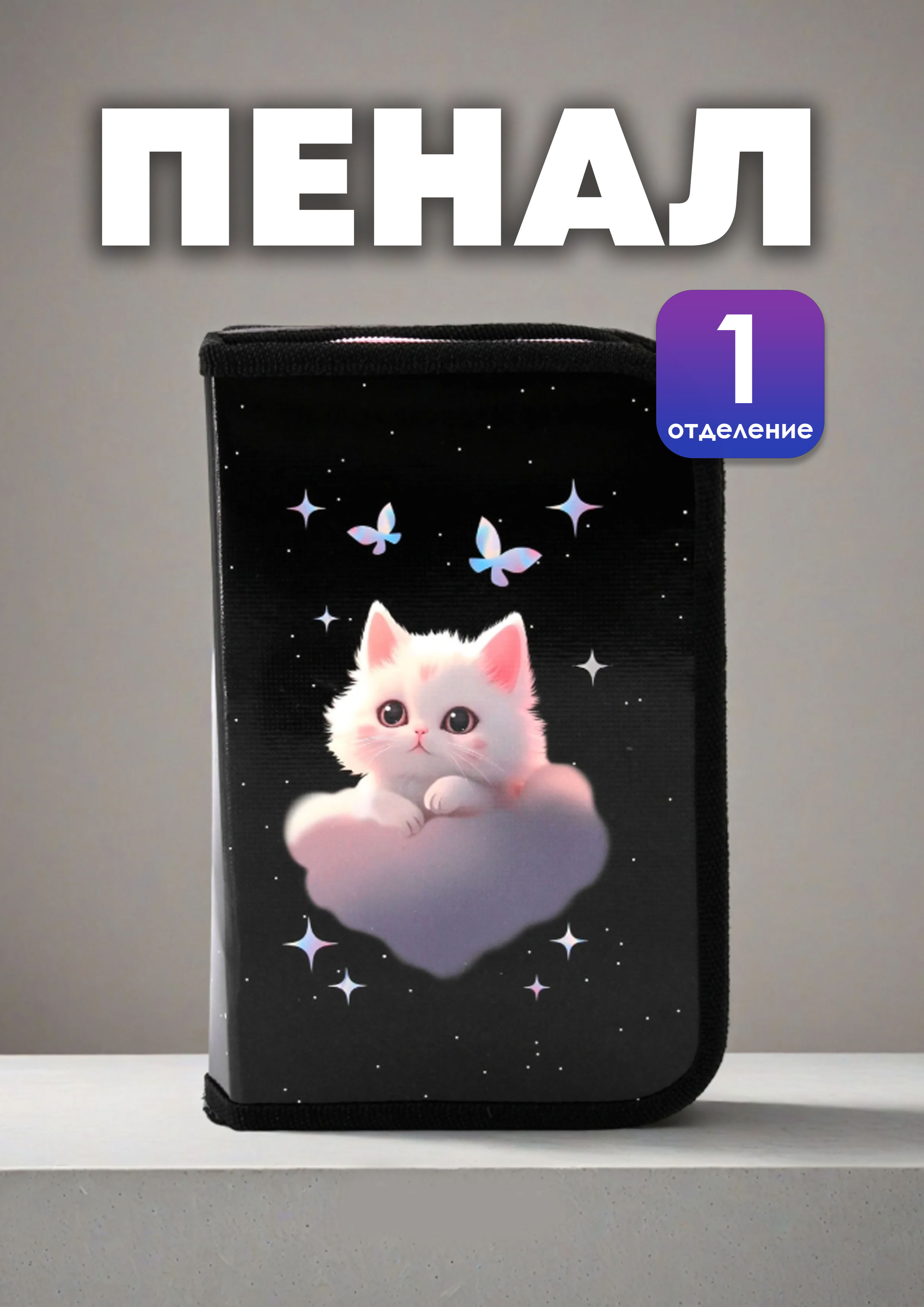 Пенал 1 отд. большой КОКОС. Dream cat, ПО-04/251697 откидная планка