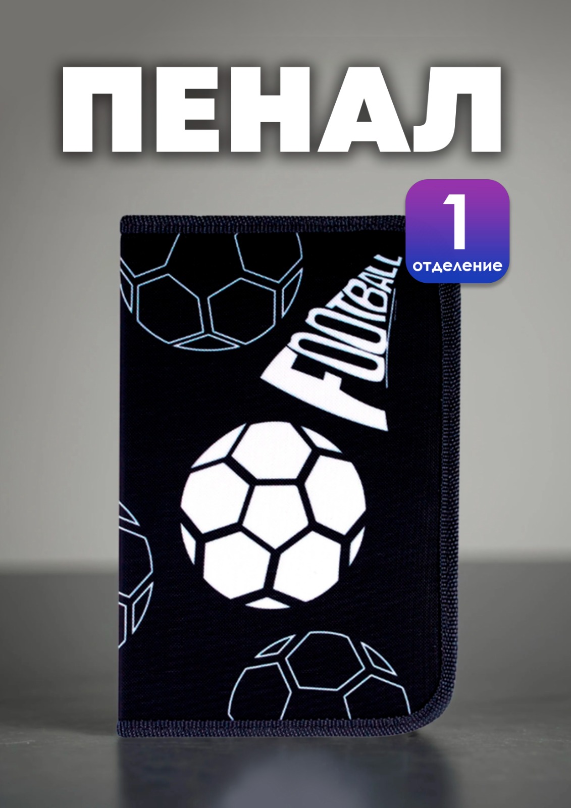 Пенал 1 отд. большой КОКОС. Football style ПО-41/251718 ткань, откидная планка