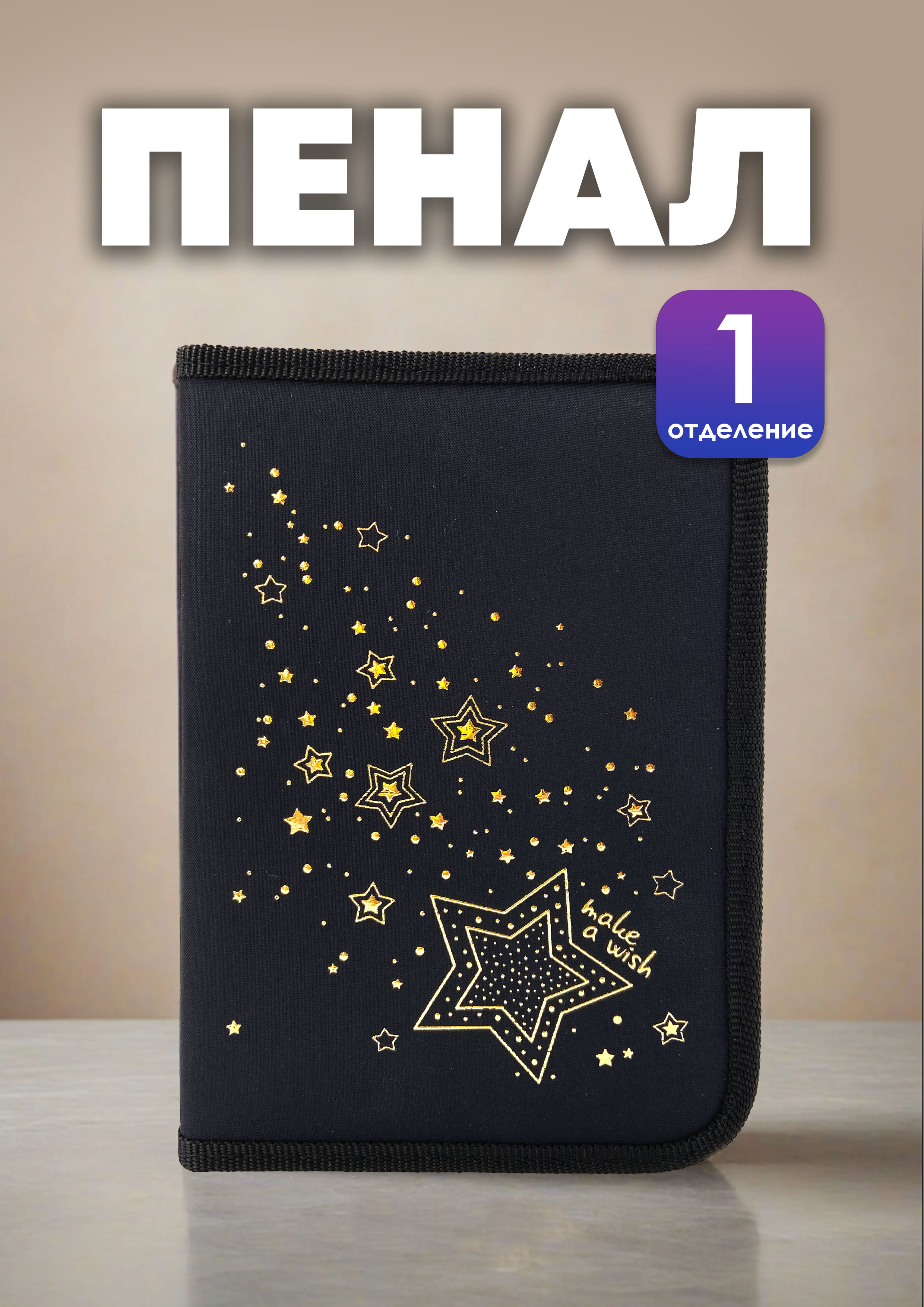 Пенал 1 отд. большой КОКОС. Stars, ПКТ 09-22-1/251589 2 откидные планки, 3D фольга
