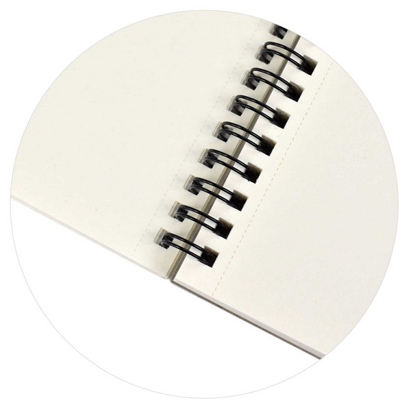размер: 297х420 мм; мягкий переплёт (гребень), материал обложки: мелованный картон 250 г/м²; вн. блок натуральный белый: 30 листов, 150 г/м², 100% целлюлоза, фактура бумаги: среднее зерно / grain fin / CP, матовая текстура бумаги, безкислотность бумаги: Да; особенности: жёсткая подложка из переплётного картона; индивидуальная упаковка: ПЭТ-пакет