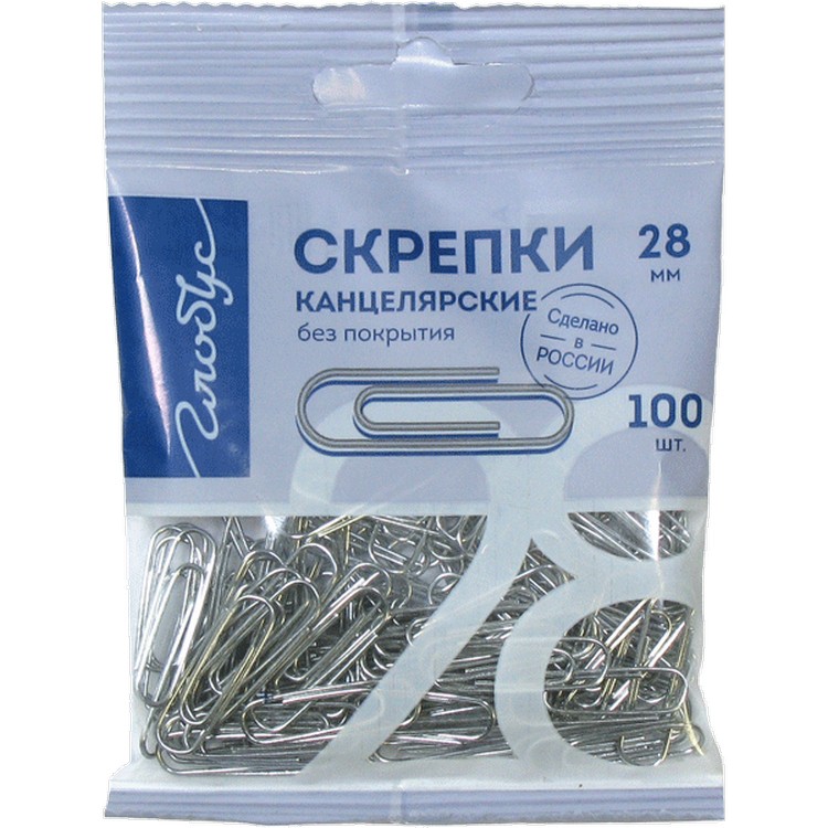 Скрепки 28 мм/100 шт С28-100Пл без покрытия, флоу-пак 4135348