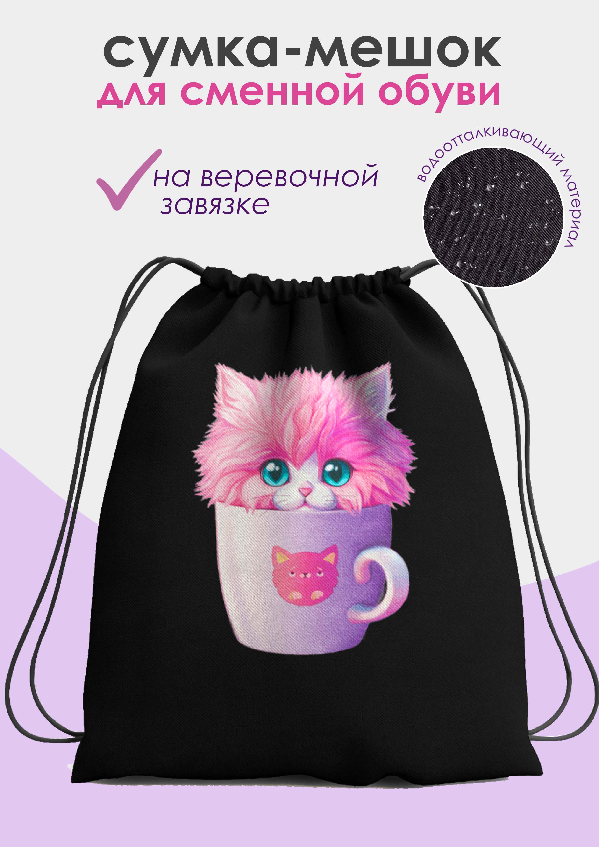 Сумка для обуви КОКОС Кот в кружке, 36*44 см 240389