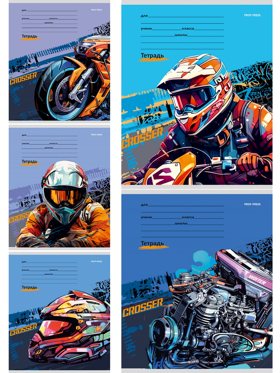 Тетрадь 12 л.клет. ПрофПресс МОТОЦИКЛЕТНАЯ ТЕМА Т12-3926 цвет.мелов, ассорти