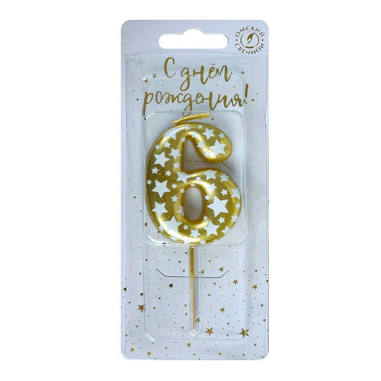 Свеча-цифра "6" Звездочки 6376