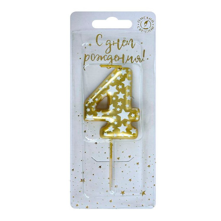 Свеча-цифра "4" Звездочки 6374