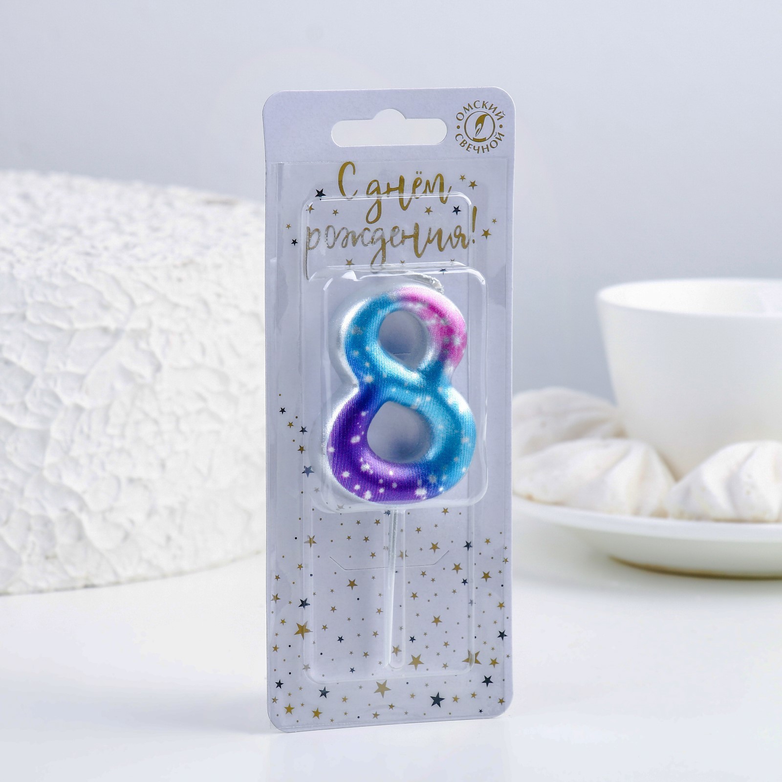 Свеча цифра космос "8" 6648