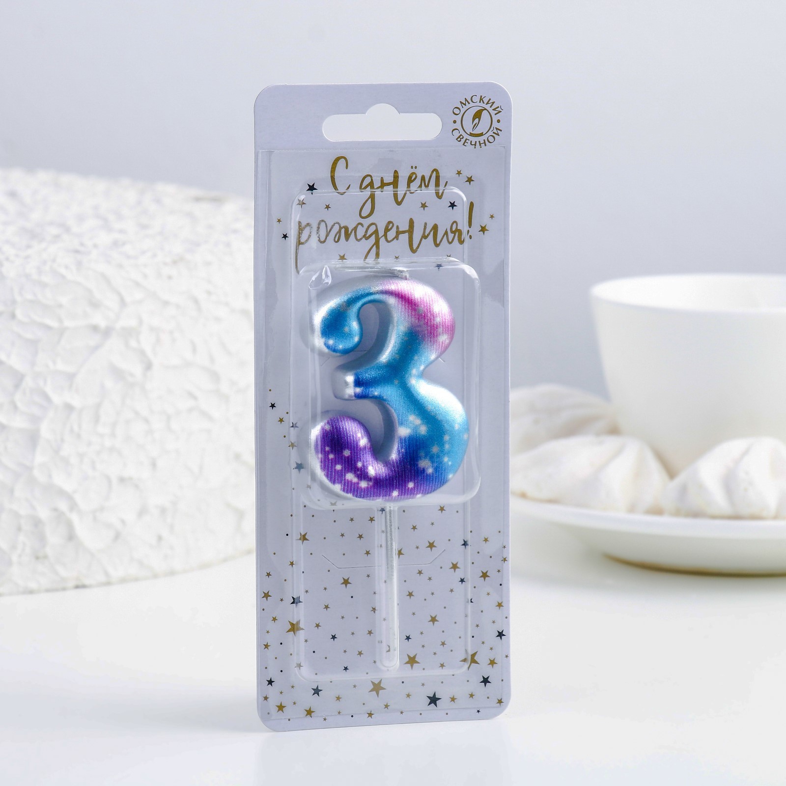 Свеча цифра космос "3" 6643