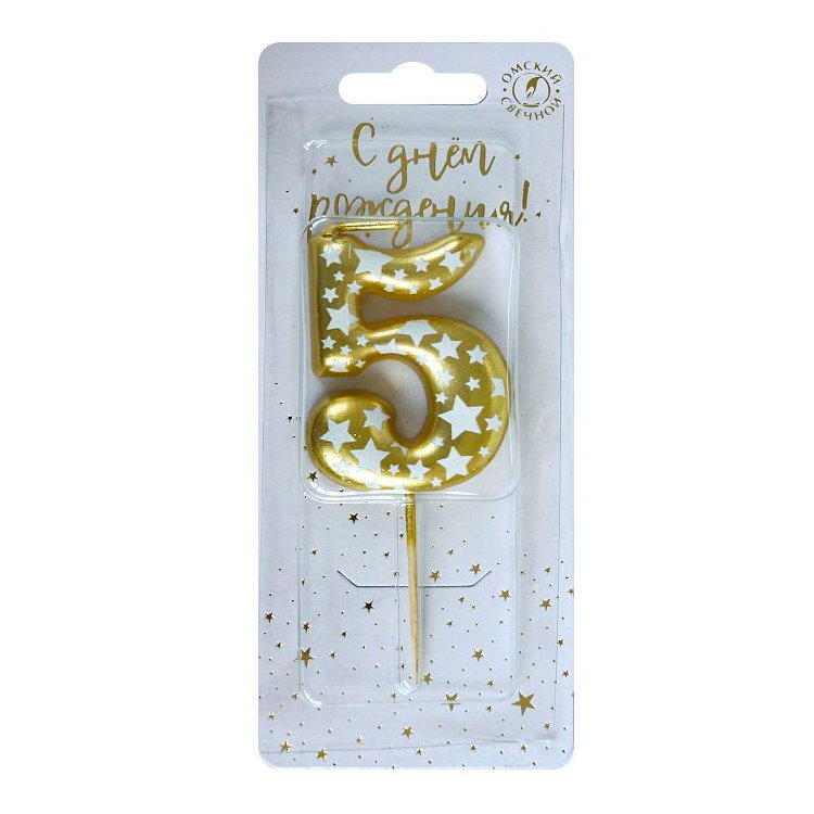 Свеча-цифра "5" Звездочки 6375
