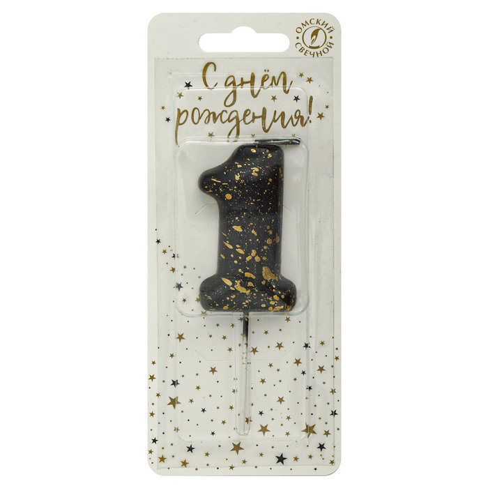 Свеча-цифра "1" черные брызги 5631