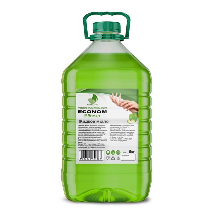 Мыло жидкое 5 л ECONOM Зеленое яблоко, ПЭТ