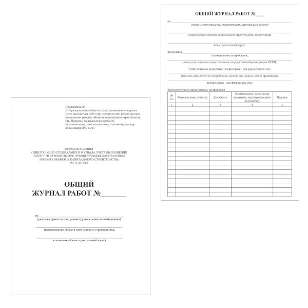 Общий журнал работ А4, 50 л, 7 разделов, РД-11-05-2007